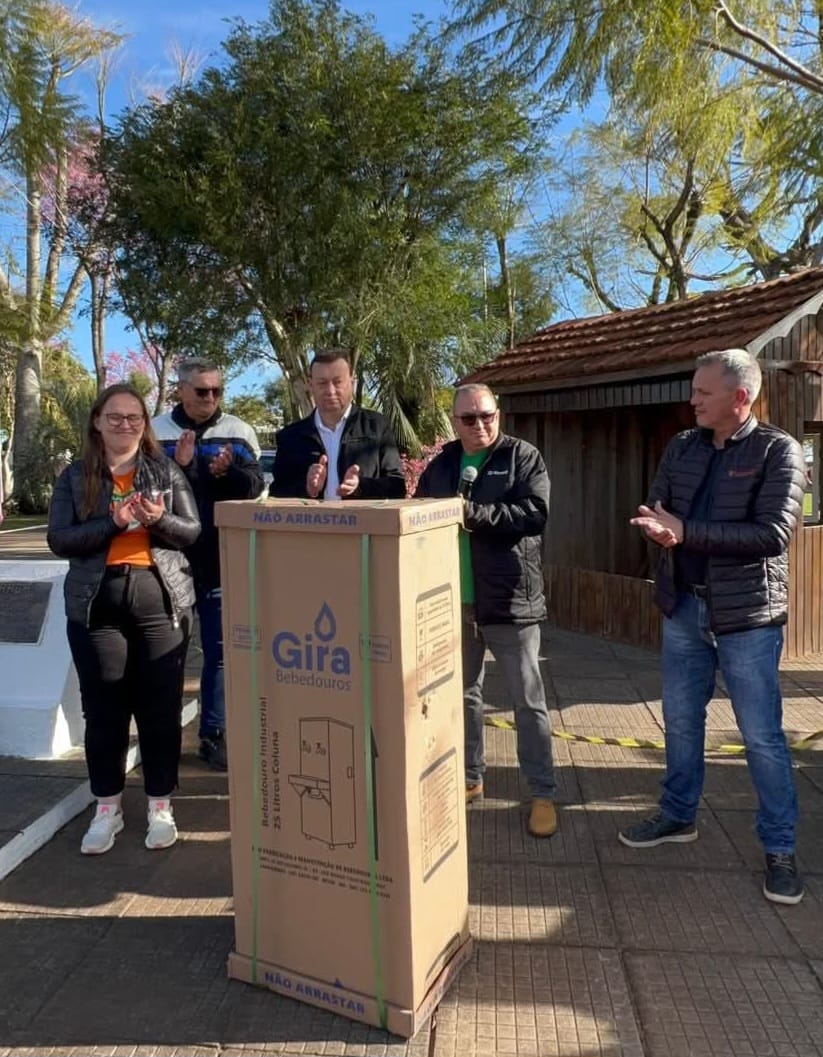 Também, aproveitando a oportunidade, as cooperativas Cotricampo, Sicredi Raízes RS/SC/MG, Cresol, Cotrimaio e Cotrisal, realizaram a entrega oficial de um bebedouro para instalação em espaço público. Esta ação intercooperada é alusiva ao DIA C – Dia de Cooperar 2025.