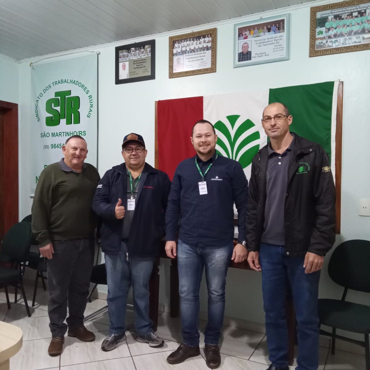 No dia 23, pela parte da manhã, ocorreu encontro com o presidente do Sindicato dos Trabalhadores Rurais de São Martinho e também coordenador da regional sindical Três Passos da Fetag-RS, Luiz Paulo Arnt, e o vice-presidente do STR, Edison Luis Ritter Unser.