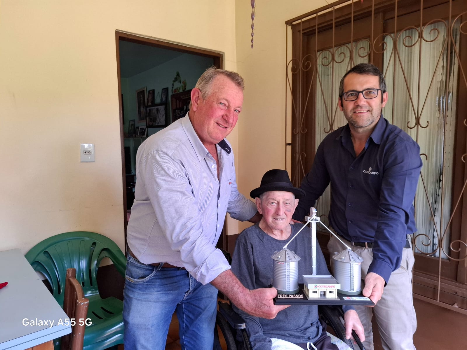 Nesta semana o gerente da Unidade de Três Passos Fabiano Kunrath, acompanhado do Conselheiro Gilberto Nitsch realizaram visita ao associado Bernardo Thiesen para entrega de um mimo como reconhecimento aos mais de 50 anos de associado da Cotricampo no município de Três Passos.