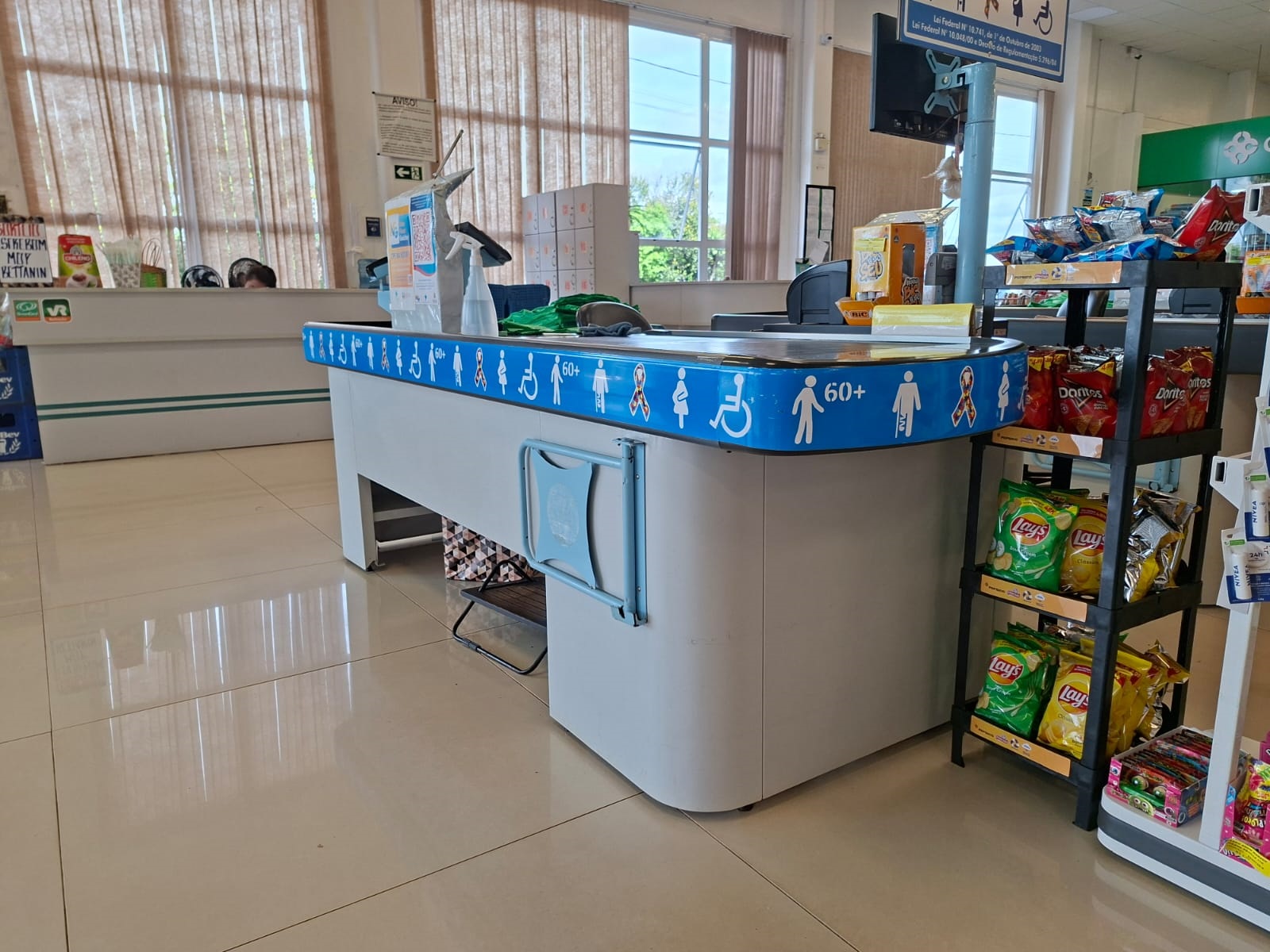 O caixa é destinado a públicos específicos e deve ser respeitado por todos os outros consumidores. A prioridade máxima é para idosos com 80 anos ou mais. Em seguida, vêm os demais idosos (60+) e os outros grupos mencionados, que têm a mesma prioridade entre si e são atendidos por ordem de chegada.