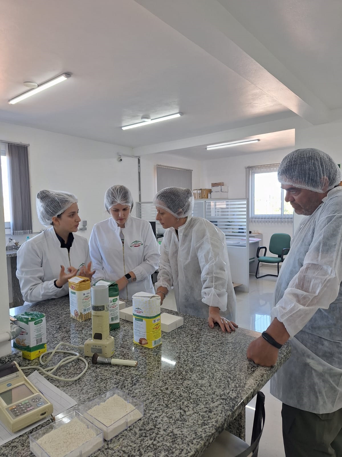 O roteiro iniciou pelas instalações do Moinho Cotricampo, sendo recebidos pela equipe de gestão da unidade. No local, conheceram um pouco mais da dinâmica dos processos internos, desde o recebimento do trigo, até o processamento, análises laboratoriais, tipos de farinhas que são produzidas, tecnologia empregada no moinho, logística, distribuição, entre outros aspectos do trabalho.