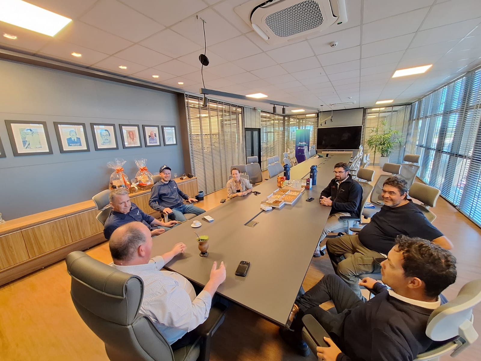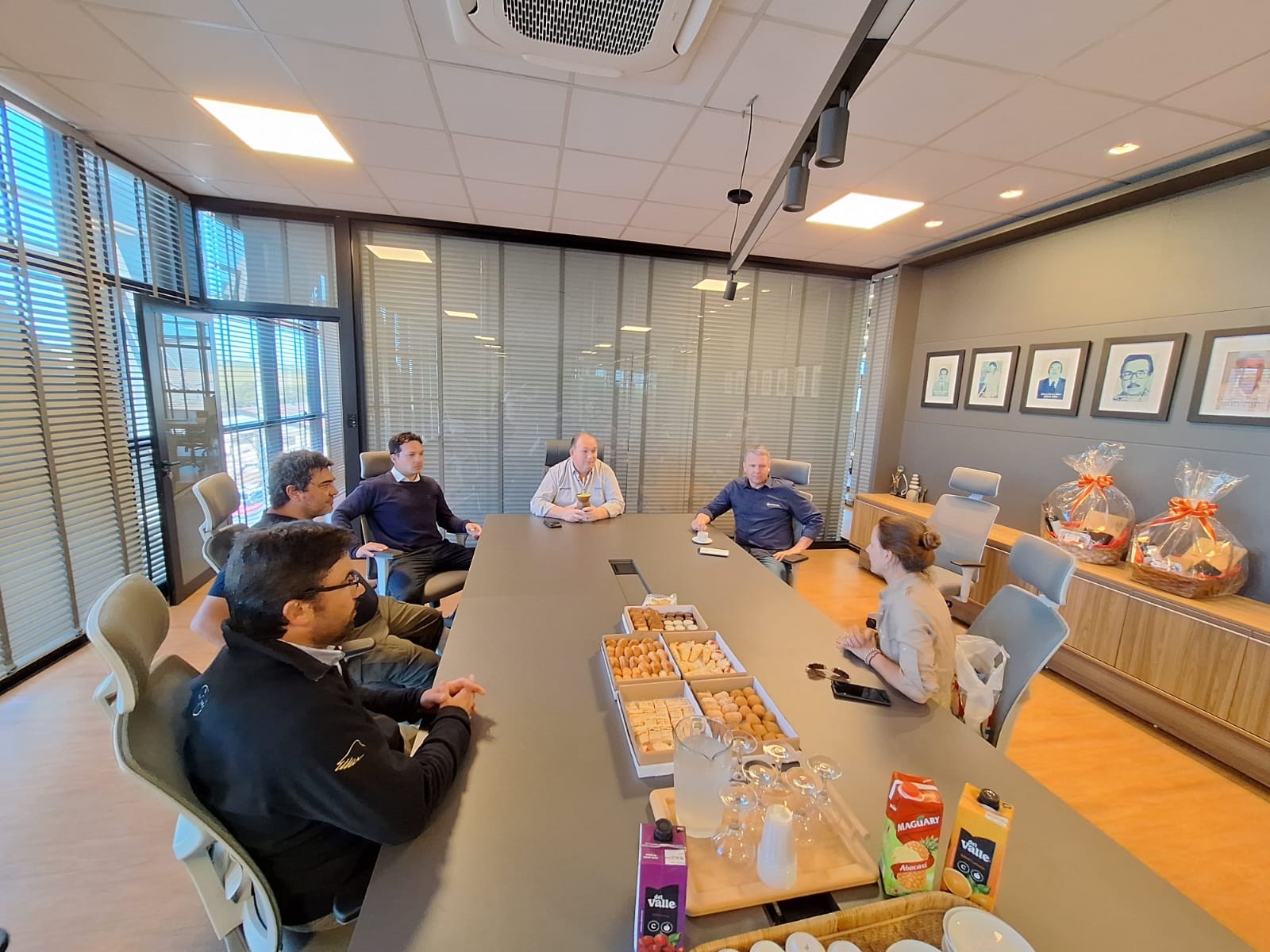 No centro administrativo, foram recebidos pelo presidente, Gelson Bridi, pelo diretor, Luciano Seefeld, pelo coordenador do Departamento Ténico (Detec), Rodolfo Richter, e pelo responsável técnico do Campo Experimental, Lucas Kuntzler.