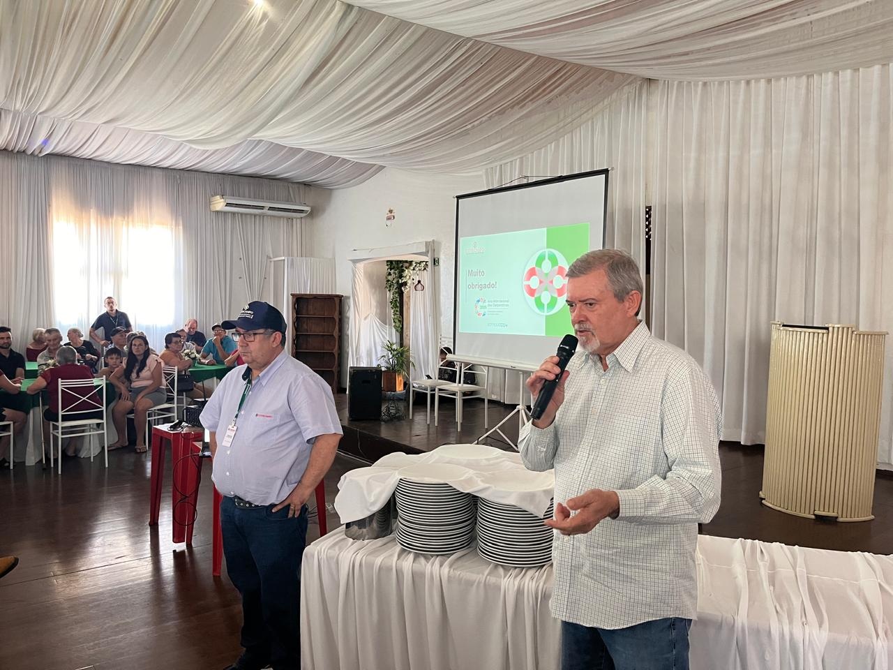 Durante as pré-assembleias, o diretor-presidente, Gelson Bridi, o diretor-secretário, Luciano Seefeld, o contador, Roni Almeida, o coordenador do departamento de comunicação social, Vadacir Guedes, e o jornalista do departamento de comunicação, Vinicius Araujo, apresentam os investimentos realizados, relatório de atividades, balanço financeiro e contábil, referente ao ano de 2025 da cooperativa, além de questões estatutárias, como renovação do Conselho Fiscal e das lideranças de núcleo.